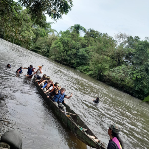 - 4:00 pm: Continuamos la aventura navegando en canoa por el río Puyo durante 45 minutos para llegar al Mirador Indichuris, un lugar perfecto para tomar fotografías espectaculares. Aquí podrás relajarte en hamacas o sentir la adrenalina con un divertido vuelo en liana.